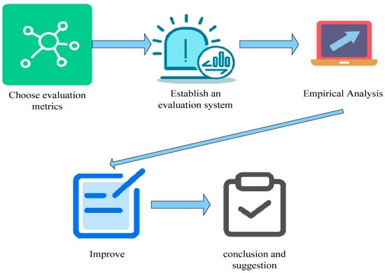 Eco-efficiency evaluation is the process of using appropriate indicators to convert the performance of enterprises, such as the degree of energy conservation and emission reduction, economic profit, etc., into simple and understandable information, and it is a systematic procedure for measuring and evaluating the eco-efficiency of enterprises. The goal of eco-efficiency evaluation is to provide effective suggestions for enterprise management, environmental protection and future development. The steps of evaluating eco-efficiency generally include selecting evaluation indicators, establishing an evaluation system, using theoretical models for empirical analysis, drawing conclusions and suggestions, and making improvements based on the current management deficiencies of the enterprise, as shown in Figure 1. Eco-efficiency assessment is an internal management process and tool. Its ultimate purpose is to continuously provide decision makers with real and reliable information on resource utilization efficiency, environmental protection degree, performance growth rate, etc. Eco-efficiency evaluation is a process that needs to continuously collect information and evaluate the collected information, and the evaluation object is its management system and operating system.