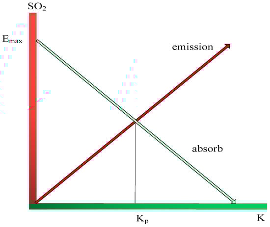 Among them, is the environmental background value, that is, the natural capital stock in the absence of environmental pollution; is the annual self-purification rate, P is the pollutant discharge, and is the function of capital; W is the annual environmental capacity of pollutants. The environmental capacity would be reduced due to the consumption of natural capital or material capital. Therefore, according to the analysis of Equation (17), it is set as a function of natural (material) capital. It is assumed here that the same pollutants are produced per unit of natural capital and physical capital input and have the same impact on environmental capacity. So far, the degradation ability of the natural environment has been introduced into the environmental equation [25].