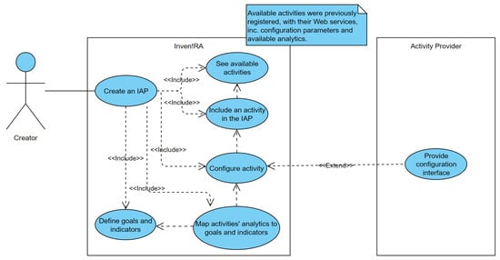 To develop the design, we elicited requirements through interviews with educational technology researchers from Portugal, Brazil, and the USA. These resulted in the identification of three user profiles, the Learning Designer, Teacher, and Student, and of a series of user stories, as detailed by Cruzeiro []. Serendipitously, it also generated the name for the new learning plan that was no longer restricted to game-based learning, the Inventive Activities Plan (IAP), exposing the ambition to support inventive learning theory (as mentioned in the Section 2).