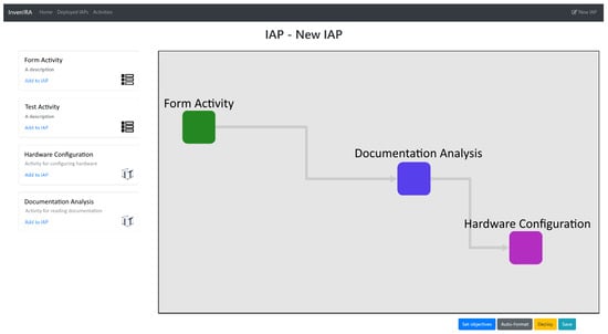 Our design started from early approaches by Bourazeri et al. [] and Baptista et al. [], as described in Section 3.1, and we developed a prototype platform implementing the first design inception of the Inven!RA architecture, presented in Section 5.1. In the same section, we showed how we demonstrated it by attempting to solve a scenario of microelectronics training with two activities, comprising (1) drafting circuit specifications after reading documentation and (2) programming an Arduino micro-controller. We also described the evaluation of this first prototype by conducting functional and integration testing. We also evaluated this first prototype in a second scenario, attempting to solve authoring and executing of location-based activities for tourists, and described this in Section 5.2.