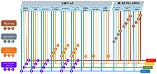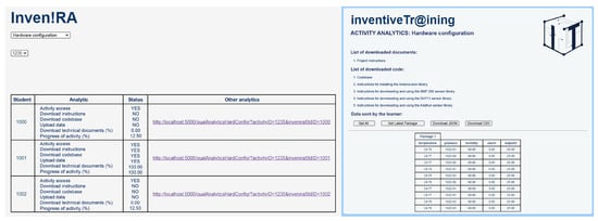 The learning activities were designed by interviewing computer networking instructors: two in higher education and two in vocational education and training. Videoconferencing interviews included two questions on the expected advantages of being able to track ongoing activities and which data would be relevant for that and were recorded, transcribed, and subjected to a thematic content analysis, as described by Grilo [].