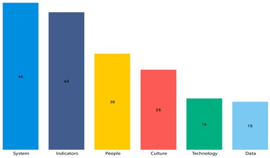 The conducted literature review identified 175 mentions of obstacles to the effectiveness of a PMS. Then, those obstacles were classified according to the proposed categories (Section 2), resulting in the distribution represented in Figure 2.