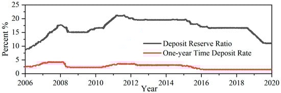 The SDRR is another tool that monetary policymakers possess to influence money markets. When monetary policymakers raise the required reserve ratio, banks have to hand over more reserves for their deposits, the funds used for lending will be greatly reduced, and money markets will tighten []. Generally, in the case of an economic downturn, in order to stimulate the economy, the state often provides more liquidity for enterprises by lowering the reserve ratio and interest rate so that they can obtain more funds to invest in production, thereby stimulating economic growth. Since 2009, the United States has implemented four rounds of quantitative easing policies (repurchasing U.S. Treasury bonds and injecting currency and reducing capital costs), and then reduced the deposit reserve ratio to release a lot of liquidity through the money multiplier effect []. It can be said that the United States released the currency of the next 30 years ahead of schedule, which allowed the U.S. economy to quickly recover from the subprime mortgage crisis and enter a period of rapid growth again.