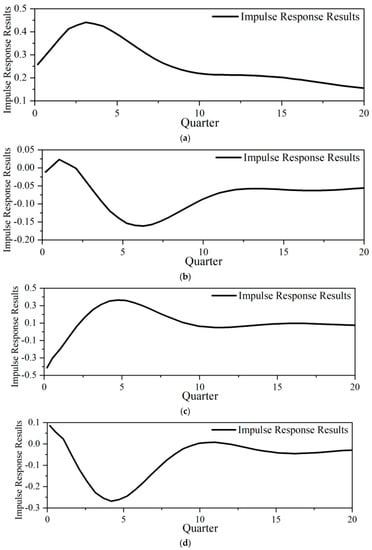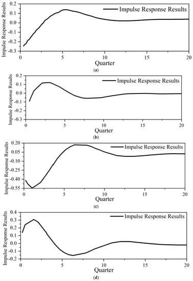 (1) Given a positive shock of one standard deviation of rM2_gro, the response of the CPI is in the same direction but different in magnitude in the two zones, as shown in Figure 23. In Zone 1, rM2_gro caused the CPI to respond negatively at first, and after a three-quarter lag period, it changed into a positive response. In Zone 2, rM2_gro caused the CPI to respond negatively at first, then after a lag of four quarters, it changed to a positive response. Comparing the ordinates of the IRF in the two zones, it can be found that the negative impact of rM2_gro on the CPI is greater in Zone 2, indicating that loose monetary policy has less of a pulling effect on CPI in Zone 2. That is to say, the impact on the CPI in the systemic risk scenario is different from traditional economic theory. The loose monetary policy does not increase the price level but reduces the price level in the short term.