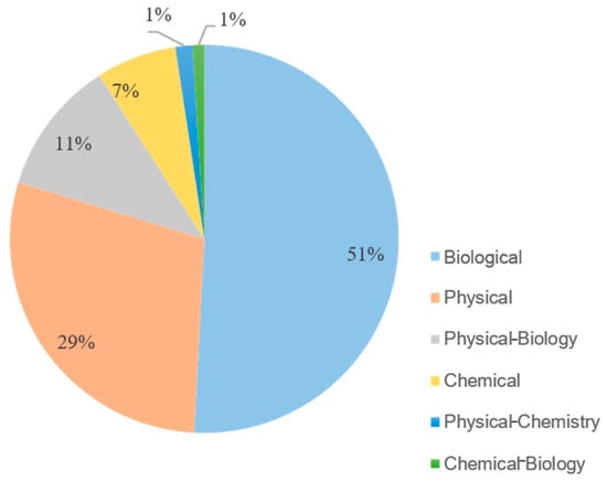 Figure 3 shows that biological restoration is the most widely used means, accounting for 51%, followed by physical restoration (29%). Among the composite restoration techniques, the most frequently used technique is physical–biological, which accounts for 11% of all techniques, while there are relatively few instances specifying a combination of physical–chemical (1%) and chemical–biological (1%) techniques.