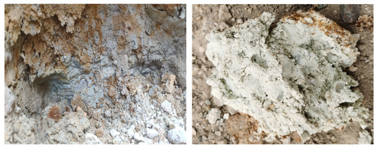 Grayish white–white silty clay revealed by borehole drilling results at the bottom of the toppling-falling zone.
