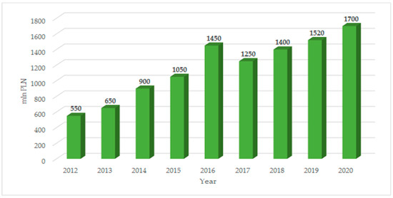 In 2020, surprising trends and behaviors were observed in the Krakow land market. The beginning of the COVID-19 pandemic at the end of February surprised a market that had not previously encountered such an event and could not predict what economic and social effects it would cause. In recent years, investors have been active in the land sector for residential development—currently, they have focused both on land designated for residential development and single-family homes. Due to good sales results of apartments, developers replenished their land banks. A novelty in 2020 was the demand for plots for single-family houses from individuals. The reason for this phenomenon was redirecting money from bank deposits to other places, i.e., plots for single-family housing that were within reach of individual investors as well as an increase in interest in single-family construction during the pandemic. For the second year in a row, there has been a decrease in buyers in the land segment for service development. The cause of this phenomenon was an increase in vacancies in office buildings and closed hotels—the effects of the pandemic. There were no significant transactions for service-designated plots. There were occasional sales of small plots with attractive locations and high prices, allowing investors to safely invest their capital. Developers can consider 2020 a successful year despite the pandemic, which led to the search for new areas for investment. data presenting income from the land real estate market is shown in Figure 6.
