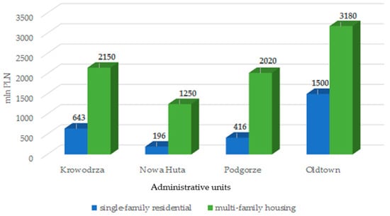 Income from land markets in Krakow (in millions of PLN per administrative units) [36].