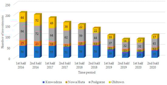 The number of residential investments in the city from 2016 to 2020 in administrative units [36].