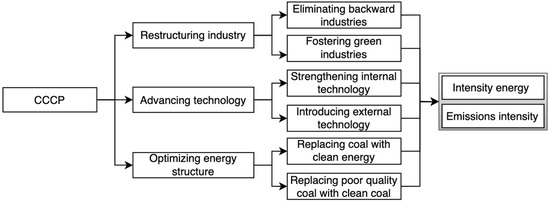 Mechanisms by which the coal consumption constraint policy (CCCP) affects energy and emissions intensity.