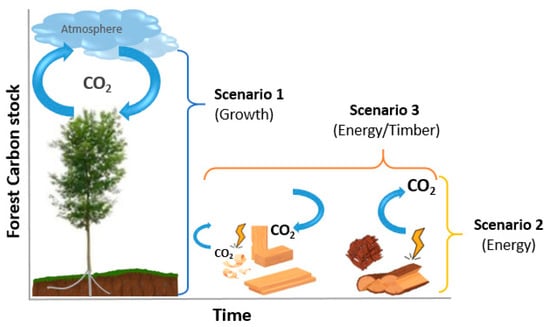 The potential impact of biogenic carbon emissions should not be ignored as a short-term source of greenhouse gas emissions. Biogenic carbon emissions are not insignificant, so this type of emission cannot be excluded during forest life cycle assessment. The exclusion of biogenic carbon emissions could lead to inappropriate comparisons and support inadequate public policy decisions regarding carbon storage []. Similar adjustments may have to be made regarding value-added products made from forest timber, such as houses, fence posts, etc. The wood from these structures eventually degrades, releasing CO2 that was originally stored by the trees used to make them [].
