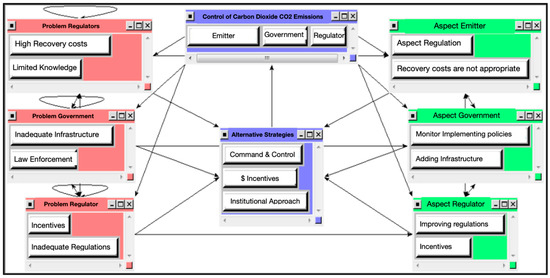 This study applied an ANP to identify the main agents involved, problems to tackle, and strategies required to curb carbon emissions in East Java, Indonesia. Insights from government officials, industry representatives, and regulators were applied to identify six main problems in emissions control in East Java: (1) limited environmental knowledge (particularly of firms); (2) insufficient environmental recovery costs allocated by companies to counteract environmental damage; (3) weak law enforcement as the government claims that it lacks resources to carry out regulatory work; (4) inadequate infrastructure, which offers few alternatives to firms and inadequate means for regulators to apply norms; (5) inadequate regulations; and (6) ineffective incentive systems (firms are unaware of instruments, and the government has failed to socialize incentives).