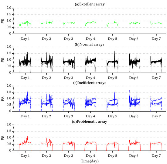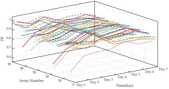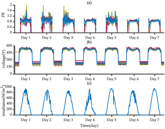 - Data preprocessing and array PR calculation: First, we cleaned the collected historical data of the PV arrays, deleted unreasonable data and low irradiance data, and then calculated the array PR.
