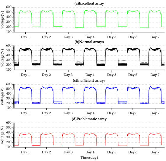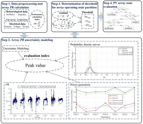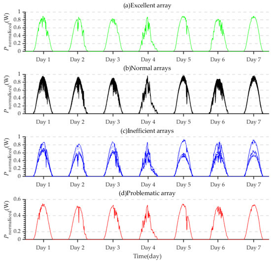 - PV array state evaluation: We calculated the peak value of the PV array according to the fixed time window, compared it with the threshold and finally determined the operating state of the PV array.