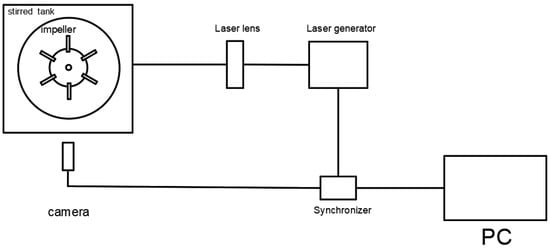- Four experiments at 300 r/min using the mixing equipment were performed. We used a PIV velocimeter to measure the fluid velocity at 25 observation points in a vertical line at the same position, as shown in Figure 4, and took the average value of each experiment as the velocity at this point;