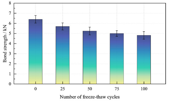 Changes in bond strength with the number of freeze–thaw cycles.