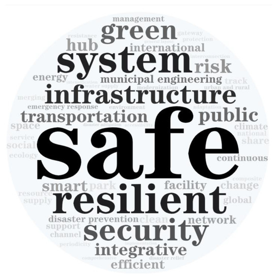 Urban resilience is multifaceted and highly adaptable in diverse socioeconomic circumstances. An examination of its connotations and collocations revealed the variety of ways the resilience idea was applied in plans and policies and identified the phrases that were frequently used in conjunction with resilience. We found through word frequency analysis that words like “safety” (59 times), “system” (31 times), “infrastructure” (30 times), and “security” (21 times) were closely related to resilience visions. They were followed by “green” (17 times), “transportation” (13 times), “municipal engineering” (12 times), “integrative” (11 times), “public” (10 times), “risk” (9 times), “smart” (8 times), “disaster prevention” (8 times), and “emergency response” (6 times). The relationship with words such as “space” (2 times), “cycle” (2 times), “sharing” (2 times), and “society” (2 times) was observable but not substantial (Figure 3).