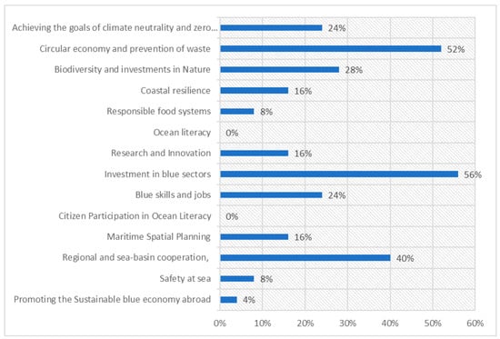 Block 2. The participants were requested to prioritize the sustainable blue economy thematic directions in terms of their pragmatic value for fishery-dependent areas during the current programming period (2021–2027), such as: