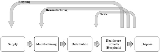 - MacNeill, A.J.; Hopf, H.; Khanuja, A.; Alizamir, S.; Bilec, M.; Eckelman, M.J.; Hernandez, L.; McGain, F.; Simonsen, K.; Thiel, C.; et al. Transforming The Medical Device Industry: Road Map To A Circular Economy. Health Affair. 2020, 39, 2088–2097. [Google Scholar] [CrossRef]