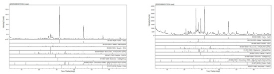 Four groups of CZ2 core samples and four groups of CZ3 core samples were tested through XRD diffraction (Figure 1). Since there was not much difference in the mineral composition and content of salt rock samples, they could be combined to calculate the average value. The results are shown in Table 1 and Table 2 below [25].