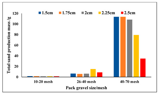 The conventional gravel packing process is to pack gravel into the formation sand to balance the change in stress caused by the damage to the formation structure and to form a sand control layer for sand control and stabilization. Generally, there is no study on the influence of the thickness of the formed gravel layer on the sand control effect [33]. In this experiment, the artificial well wall and gravel packing process are combined. On the basis of the above screen sand control, gravel is evenly packed outside the perforated brine string so that the packed gravel layer forms an artificial well wall and finally forms the sand control layer. Different gravel particle sizes and different thicknesses of the artificial well wall have different effects on sand control. Therefore, this experiment mainly explores the influence of two factors, that is, gravel size and artificial shaft wall thickness, on the effect of brine drainage and sand control.