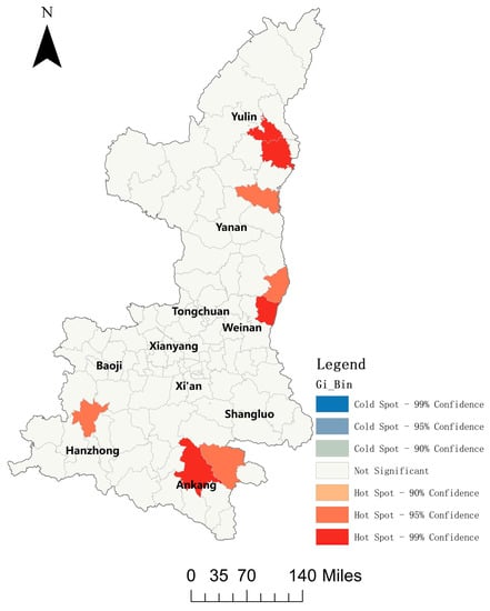Local Getis-ord Gi* index of traditional villages in Shaanxi province.