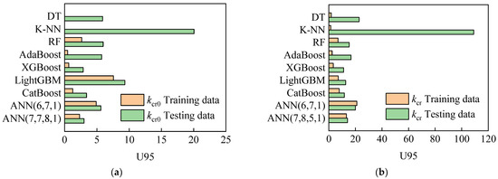 The U95 of machine learning models for kcr0 and kcr. (a) U95 of models for the Type-1 dataset; (b) U95 of models for the Type-2 dataset.