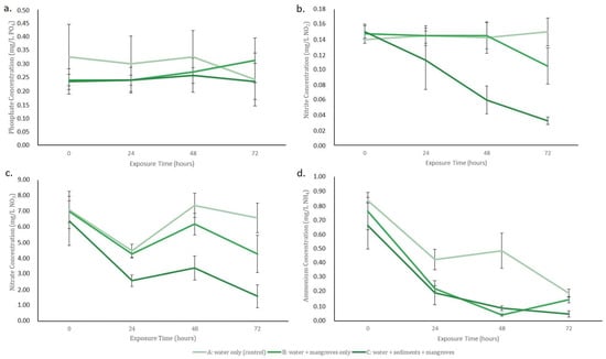 - Treatment C: tap water + mangroves + sediment (C1, C2, C3, C4).