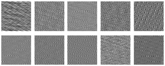 In the formula: P represents the value of the m row and the n column in the two-dimensional grayscale image; L represents the value of one-dimensional time domain signal after single sampling, and its length is N2; N indicates that the size of the converted image is N ∗ N, corresponding to the length of L; the function round (x) represents rounding the data to ensure that the converted data is an integer valued [0, 255]. This is then converted to several 64 * 64 images, as shown in Figure 7.