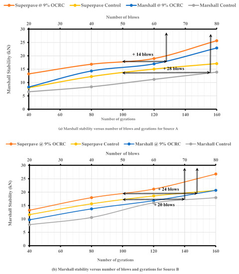 - Source B: In order to achieve the same Marshall stability value as the Superpave unmodified sample, the MIH required 70 blows (20 extra blows). In addition, the modified sample at 9 percent OCRC required 74 blows (24 extra blows).