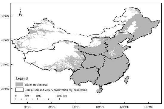 The study area is divided into eight soil and water conservation areas based on the Soil Erosion Classification Standard of China developed by the Ministry of Water Resources to identify hotspots vulnerable to changes in rainfall erosivity and uncover regional variations in erosion characteristics, as shown in Figure 1. Regional differences in soil erosion control measures are taken into account as well as the type, intensity, related risks, and socioeconomic factors while drawing the line of soil and water conservation regionalization.