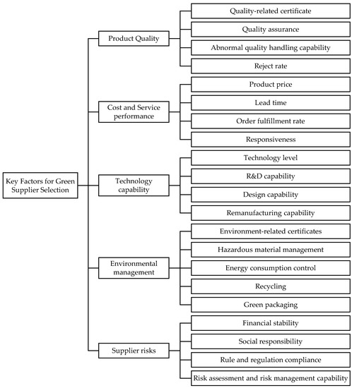 With the advancement in mobile communication technology and edge computing management mechanisms, IoT (Internet of Things) applications have become increasingly popular and efficient in building smart cities and providing a green and friendly environment [1]. IoT technology has the potential to drive green solutions for the industry and government. Integrating IoT into any viable model of a sustainable global economy is a main trend [2]. In recent decades, concern for environmental management has obviously increased due to the fast-paced development of the economy. Many environment-related regulations and institutional pressures have driven enterprises to control environmental risks and threats. The European Union (EU) has applied strict regulations on a reduction in hazardous substances (RoHS Directive) and the waste of electrical and electronic equipment (WEEE Directive). The regulation concerning the registration, evaluation, authorization and restriction of chemicals (REACH) has enforced companies to change their production methods to be more eco-friendly. In 2015, the United Nations General Assembly also set up Sustainable Development Goals (SDGs) with a collection of 17 goals calling for actions to improve a better and more sustainable future around the globe. One of the vital SDGs is to protect the environment and combat climate change and its impacts. Investors and customers also require more environmental, social and corporate governance practices from companies for innovative value chains and environmentally friendly products and services [3]. In a survey from Accenture [4], 72% of consumers purchased more environmentally friendly products than five years ago, and 81% of respondents wanted to purchase more in the next five years. To deal with these expectations from stakeholders, regulations from organizations and governments, companies must integrate economic growth and environmental issues to enhance sustainable development. One of the important issues in developing sustainable strategies was building a green supply chain that integrated environmental factors into supply chain management (SCM). For businesses, the “greening” of the supply chain was considered a part of a green investment strategy, helping businesses to effectively use natural and environmentally friendly resources, thereby improving their competitiveness and business performance. To build a green supply chain, businesses had to start by sourcing and choosing green suppliers who provided environmentally friendly materials. Therefore, the key factors for green supplier selection (GSS) were an important research topic worth investigating.