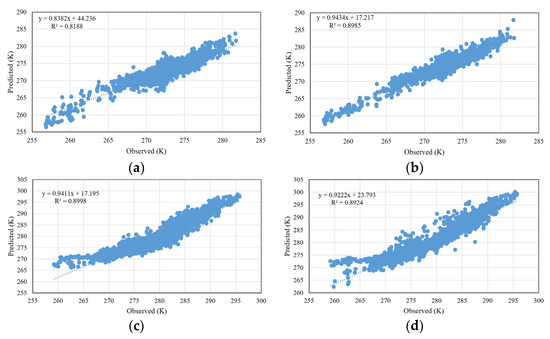 In the statistical models, the history of soil temperature in a time-series format is applied for prediction. Two stochastic models, autoregressive integrated moving average (ARIMA) and autoregressive moving average (ARMA), have been addressed in several studies [13,14,16]. The inherent need of statistical models for a large amount of time-series data to make reliable long-term predictions has drawn attention to machine learning models, such as artificial neural networks (ANN), gradient boosting (GB), support vector machine (SVM), k-nearest neighbors (KNN), random forests (RF), and linear regression (LR) [17,18].