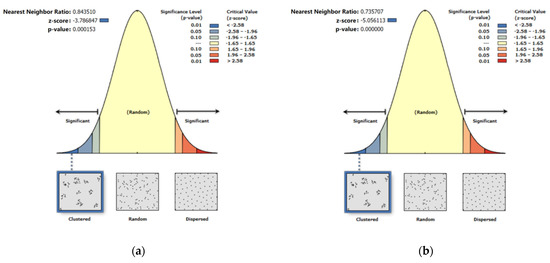 Average nearest neighbor statistical significance results. (a) Diversion area; (b) merging area.