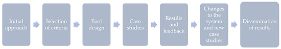 The first phase was to identify previous relevant works by analysing the publications in the databases and repositories (Scopus, Web of Science, Dialnet, Oxford Journals, UPCommons, and Recyt) as well as consulting the social academic networks (Academia.edu and ResearchGate) and the Google Scholar search engine, using, initially, two keywords: “Citizen initiative” and “community participation”. Due to the limited information obtained, other keywords were included in the search: “Self-assessment + neighbourhood impact”, “Community participation”, “Community initiatives”, “Indicators + neighbourhood impact”, “Community participation + evaluation”, “Neighbourhood impact + sustainability”, “Community self-management + neighbourhood improvement”, “Citizen self-management + appropriation of public space”, “Citizen self-participation”, “Community empowerment + self-assessment”, and “Citizen empowerment”. All of these were searched in Spanish, English, French, and German over a period of two months. This search resulted in the identification of the three evaluation models mentioned before.