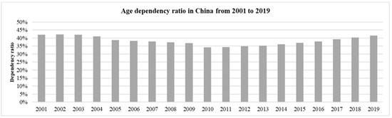 Since China became an ageing society in 2000, the problem of its population ageing has attracted increasing attention. Many research results showed that the sufficient supply of labour is one of the factors of China’s rapid economic growth, and that the contribution of population structure, caused by the increase in the proportion of working-age population and the decline of the population-dependency ratio, to China’s economic growth is in the range of 1/6–1/3 [45,46,47]. As the population is ageing, China’s economic growth will face the threat of a shortage of labour [48,49].
