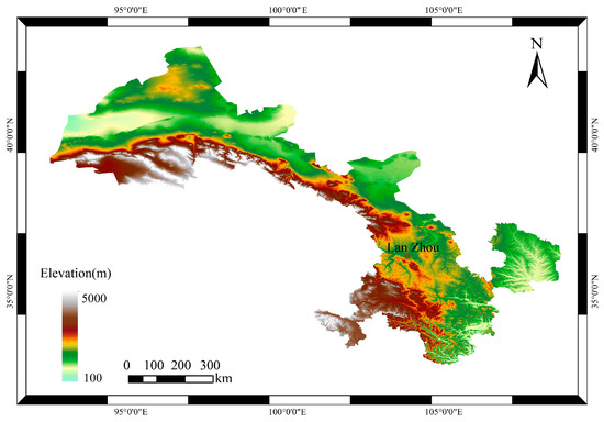 Gansu Province is located in Northwest China on the upstream of the Yangtze River between 32°11′ N and 42°57′ N, 92°13′ E and 108°46′ E (in Figure 1). Gansu Province is a vast area with complex and diverse landscapes. The terrain is elongated, and it is 1659 km long from east to west and 530 km broad from north to south, occupying 4.72% of the total area of China [39]. Most altitudes are above 1000 m, with the most prominent mountain ranges including the Qilian Mountains and the Liupan Mountains. Gansu Province is abundant in wind and solar emergy reserves, reaching a total of 237 million kilowatts of wind energy [40]. Gansu Province is a multi-ethnic province with a resident population of 25,012,200 in 2020.