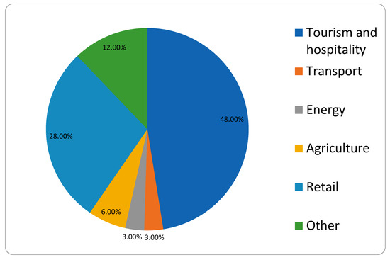 Figure 1 depicts the number of enterprises from various sectors. Approximately 47% of businesses are in the tourism and hospitality sector, followed by 28% in retail, 6% in agriculture, 3% in energy and transportation, and 12% in other industries.