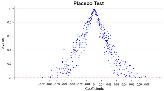 To avoid the false association caused by other external factors, this paper randomly selects the experimental group, retains the proportion of 180 groups in the original sample as the experimental group, and constructs 400 virtual experimental groups and control groups. The results are presented in Figure 1. Most randomly generated experimental groups have p values greater than the real p values after regression, and most p values are above 0.1. Only a few p values are close to the real p values, indicating that implementing the environmental tax reform can effectively promote the improvement of corporate environmental performance. This conclusion is robust.