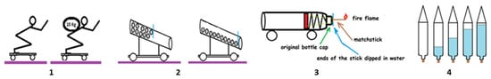 We used the data obtained from previous research on the effect on students’ learning of four interclass games and tournaments for teaching integrated STEM [,,,,,]. These are four interclass tournament activities for elementary and middle school students.