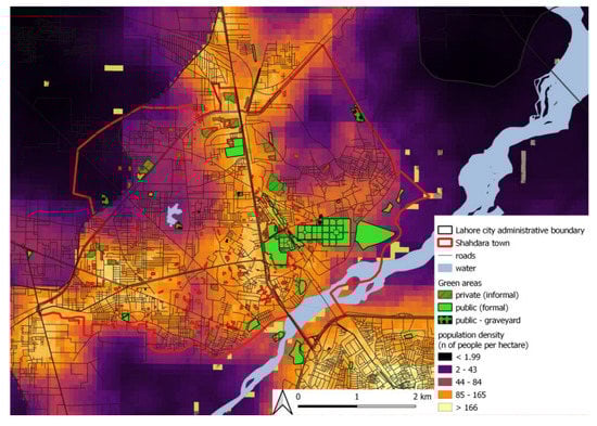 - Shoaib, A.; Nadeem, K.; Islam, H.S.; Saleemi, A. Assessing spatial distribution and residents satisfaction for urban green spaces in Lahore city, Pakistan. GeoJournal 2022, 87, 4975–4990. [Google Scholar] [CrossRef]