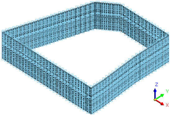 Considering the displacement boundary conditions, the expression of the strain energy of the wall is obtained by substituting Equation (1) into Equation (2):