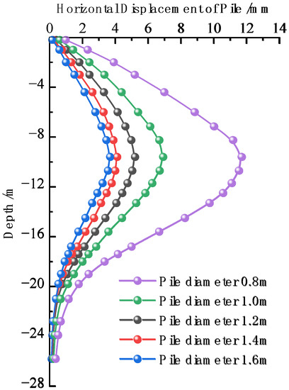 Horizontal displacement of retaining pile with different pile diameter.