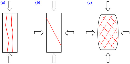 Typical failure modes: (a) axial splitting; (b) shear failure, and (c) multiple shear failure.