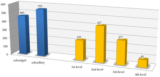 The students included in the study were of different sexes and attended classes at different levels (Figure 2). The possibility of filing surveys only by students with particular learning achievements was eliminated by surveying all classes, without distinguishing certain students.