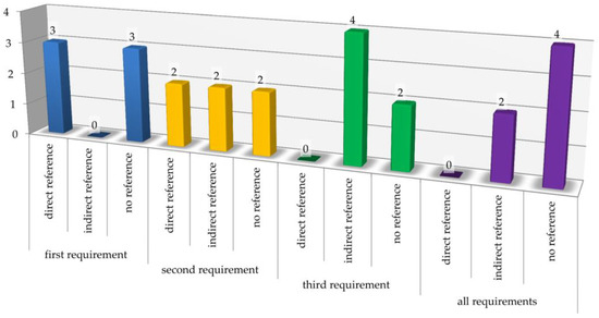 A summary of the above analysis, with an indication of the number of direct and indirect references to quality in the scope of selected requirements in the analyzed schoolbooks, is presented in Figure 3. It is noteworthy that a direct reference to quality can be observed in none of them when meeting all the requirements, and only in two can indirect references be noted.