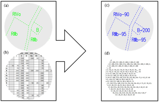Another element of input data is information on the estimated values of respective land use/soil valuation classes. Due to variations in the specificity of the relative value of land depending on the geographical location and social factors, the legal regulations on land consolidation in Poland do not provide for a uniform valuation system. A default solution is the estimated value rates determined by the participants of a land consolidation project and finalised by way of a resolution [51]. This document, processed into spreadsheet tables with a specific format (Figure 3), is the algorithm’s input file.