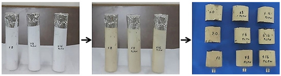 From the storage stability test results displayed in Table 7 and Figure 7, it was observed that the PCPW char additive accumulated at the bottom of the tube, and therefore, the softening point values of the bottom parts of the modified binders in the tube were higher, and the penetration values were lower than the top parts of the modified binders. This result is compatible with the specific gravities (Table 4) of modified binders with PCPW char. It can be said that the storage stability of 8% modified bitumen is suitable. On the other hand, if the additive was used at a rate of 16%, it was determined that the softening point and penetration value differences between the bottom and top parts of the tube exceeded the specification limits. This means that 16% modified bitumen is not suitable for storage.
