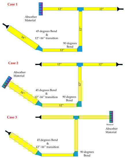 In another measurement study, the transmission characteristics of three different T-junction cases with different antenna gains were investigated over 500 MHz to 1 GHz, with a spectral resolution of 6.25 MHz (Figure 11). Three types of antennas were attached to the VNA ports, as shown in Table 1, including low-gain (1 dBi), middle-gain (4 dBi), and high-gain (10.5 dBi) double-ridged antennas.
