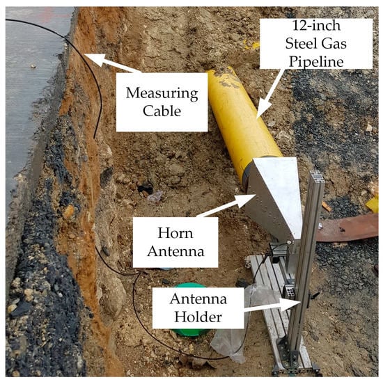 As shown in Figure 14, real pipeline tests were conducted by installing antennas and measuring equipment (spectrum analyzer) at both ends of the pipeline.